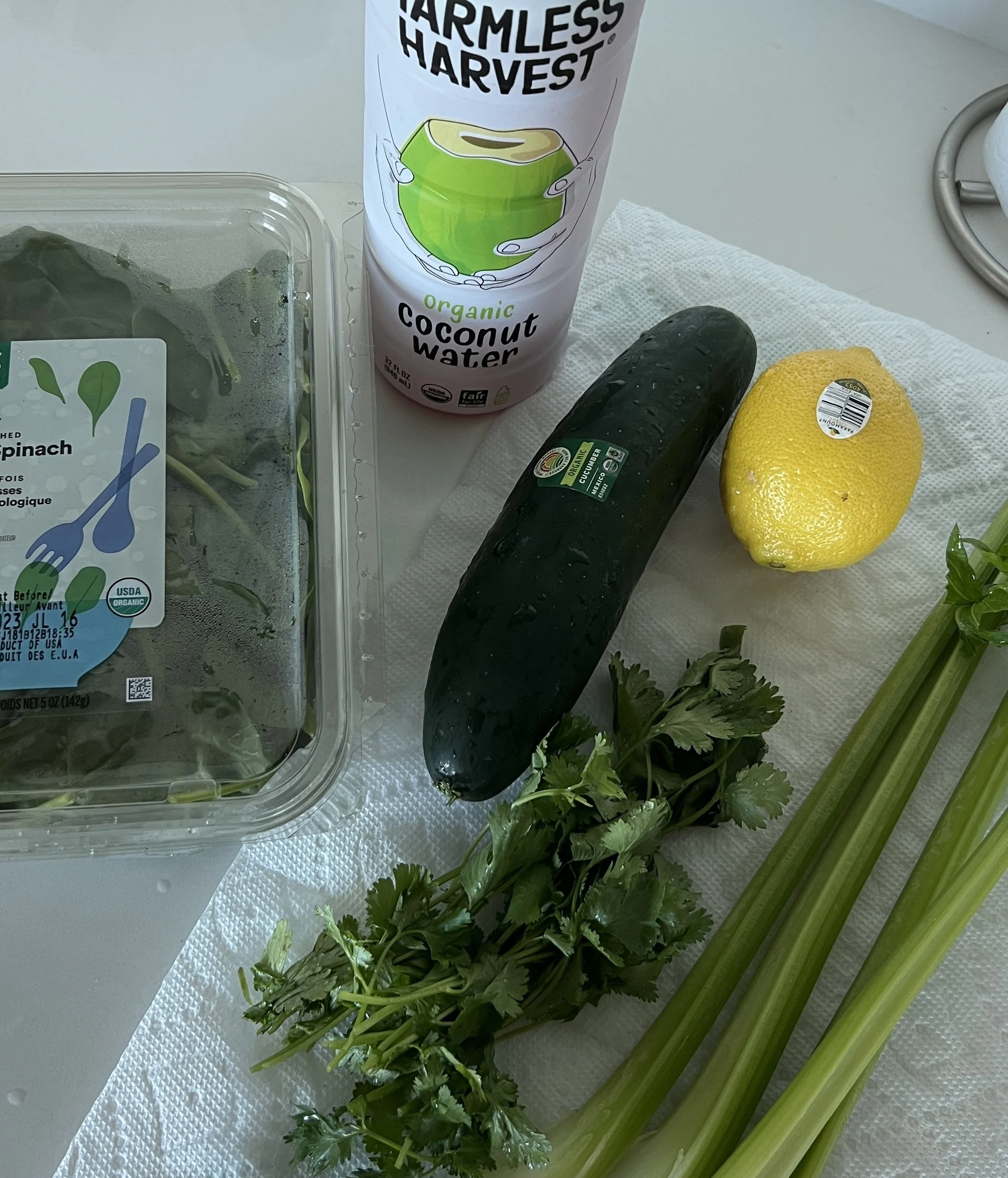 Combine Ingredients - In a blender, add the handful of spinach, lemon, celery, ginger, cucumber, cilantro.